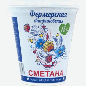Сметана ФЕРМЕРСКАЯ ЛИТВИНОВСКАЯ 15% 300гр пл/ст