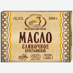 Масло сливочное Крестьянское 72,5% 200гр ИМСБ