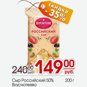 Сыр Российский 50% Вкуснотеево 200г