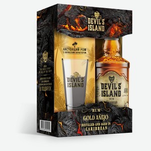 Ром Devil s Island Gold Anejo с бокалом в подарочной упаковке Россия, 0,7 л