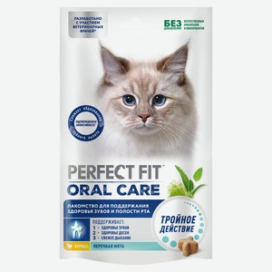 Лакомство для кошек PERFECT FIT Oral Care с курицей и мятой, 50 г
