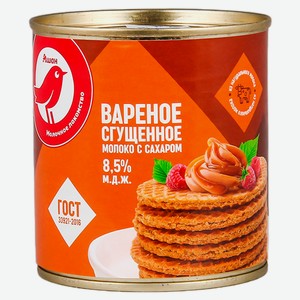 Молоко сгущенное АШАН Красная птица Вареное с сахаром 8,5% ГОСТ БЗМЖ, 370 г