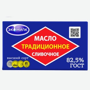 Масло сладкосливочное «Экомилк» Традиционное несоленое брикет 82,5% ГОСТ, 160 г