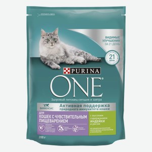 Корм для кошек Purina One при чувствительном пищеварении, с индейкой и с рисом, 200 г
