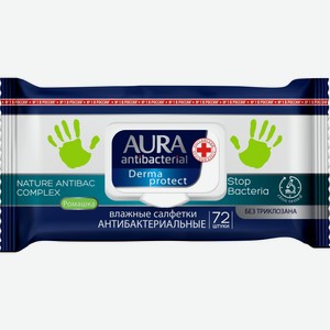 Салфетки влажные антибактериальные Aura ромашка, 72 шт