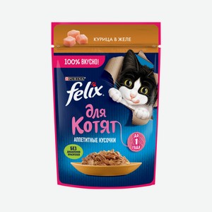 Корм для котят Felix Аппетитные кусочки курица в желе, 75 г