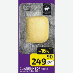 Сыр ЛИПИН БОР грюйер молодой, 50%, 180 г
