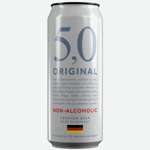 Пиво б/а светлое пастеризованное, жест.упаковка 5,0 Original 500мл.
