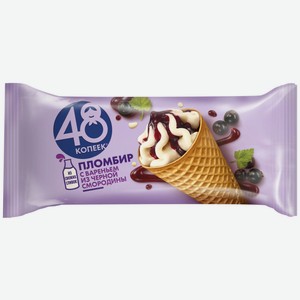 Мороженое 48 копеек пломбир с вареньем из черной смородины, рожок, 111 г (Nestle)
