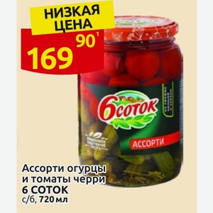 Ассорти огурцы и томаты черри 6 СОТОК с/б, 720 мл