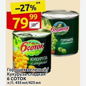 Горошек зеленый/ Кукуруза сладкая 6 СОТОК ж/б, 435 мл/425 мл
