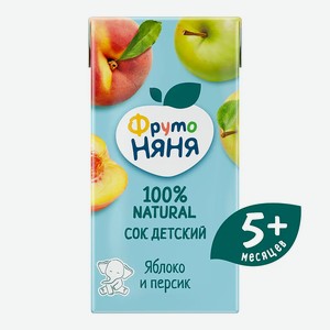 Сок ФрутоНяня яблоко-персик без сахара неосветленный, 0,2 л