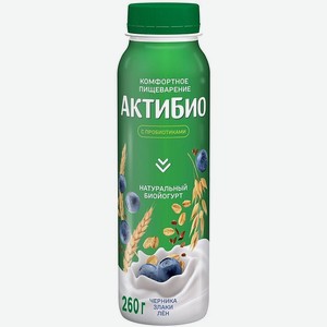 Биойогурт питьевой АктиБио Черника злаки льняные семена 1,6% 260г