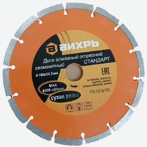 Диск алмазный отрезной Вихрь 180x22,2 мм, сухая резка (73/10/3/15)