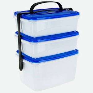 Набор контейнеров PLAST-TEAM с ручкой для переноски, 3 шт, голубой/прозрачный (PT9150/МВМГПР-22)