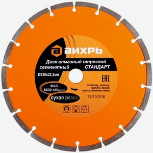 Диск алмазный отрезной Вихрь 230x22,2 мм, сухая резка (73/10/3/16)