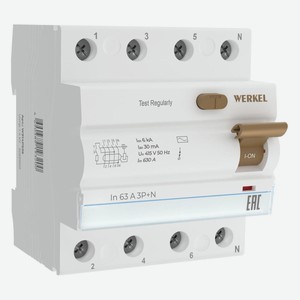 Устройство защитного отключения Werkel 3P+N 63 A 30m А АС 6 kа (W914P636)