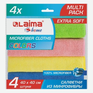 Салфетки универсальные Laima из микрофибры, 40х40 см, 4 шт (607793)