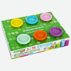 Тесто-пластилин Brauberg Kids, 6 цветов, 300 г, 10 формочек, шприц, стек, крышки-штампики (106719)