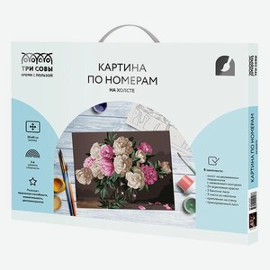 Картина по номерам Три Совы Букет пионов , на холсте, 30х40 см, с акриловыми красками и кистями (КХ_44107)