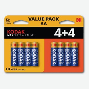 Батарейки Kodak Max Super Alkaline АА (LR6), 8 шт (LR6 4+4BL)