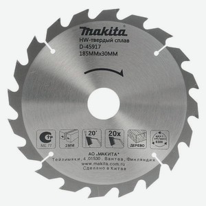 Диск пильный Makita Standard D-45917, по дереву, 185х30/16/20 мм, 20Т