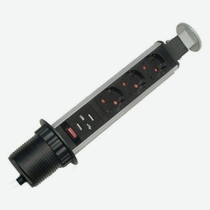 Выдвижной блок розеток GLS POP UP Compact, 2хUSB Silver