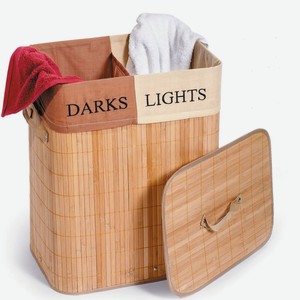 Корзина для белья TATKRAFT Fortuna, с 2 секциями, бамбук, 60 л, коричневая
