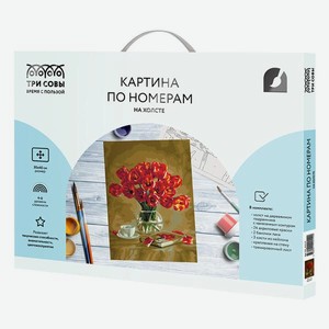 Картина по номерам Три Совы Красные тюльпаны , на холсте, 30х40 см, с акриловыми красками и кистями (КХ_44112)