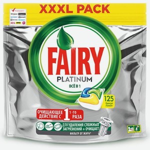 Капсулы для посудомоечных машин Fairy Platinum All in One Lemon, 125 шт
