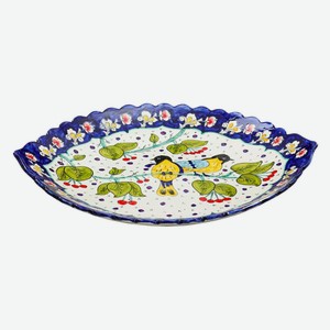 Ляган ШАФРАН Пара птичек , риштанская керамика, овальный, рифленый, 41 см (1924279)