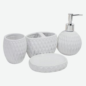 Набор для ванной СИМАЛЕНД Камелия , мыльница + дозатор для мыла + 2 стакана, белый, 4 предмета (2985273)