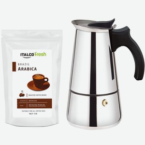 Подарочный набор Italco гейзерная кофеварка Torino на 6 порций + кофе в зернах Italco Arabica Brazil, 90 г (245600)
