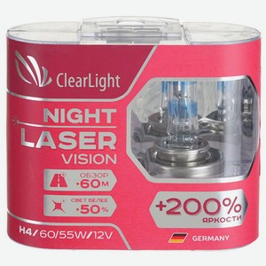 Лампа автомобильная галогенная Clearlight H4 12V-60/55W Night Laser Vision + 200%, 2 шт (MLH4NLV200)