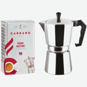 Подарочный набор CAFFE-CARRARO Happy New Year Oro, кофе молотый Carraro Primo Mattino + гейзерная кофеварка Italco Express (201300)