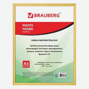 Рамка для оформления Brauberg HIT 2, 30х40 см, пластик, багет 12 мм, золотистая (391132)