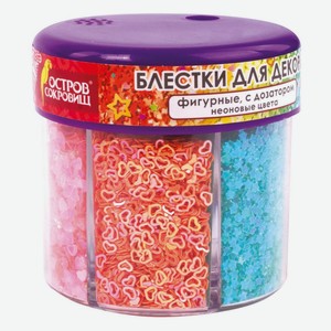 Блестки ОСТРОВ-СОКРОВИЩ фигурные, диспенсер с дозатором, 6 цветов х 9 г, неон (662226)