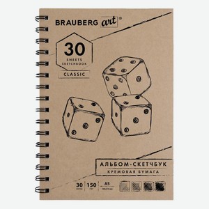 Скетчбук Brauberg Art Classic, слоновая кость, 150 г/кв.м, 148х210 мм, 30 листов, гребень (128948)