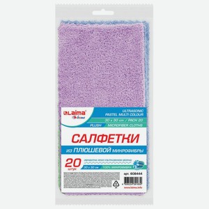 Салфетки для уборки Laima Pastel, из плюшевой микрофибры, 30х30 см, 20 шт (608444)