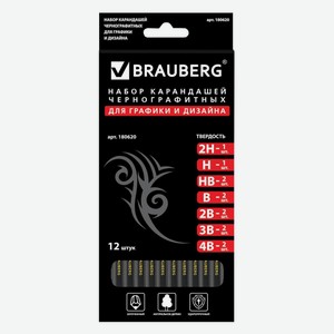 Набор чернографитных карандашей Brauberg Black Jack, 2Н-4В, дерево, заточенные, 12 шт (180620)