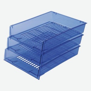 Лотки для бумаг Brauberg Office, горизонтальные, 340х270х70 мм, тонированные синие, 3 шт (237259)