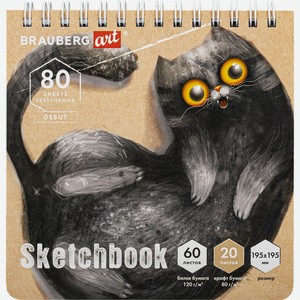 Скетчбук Brauberg Debut, белая бумага 120 г/м2 + крафт 80 г/м2, 60 + 20 листов, гребень, 195х195 мм (112983)