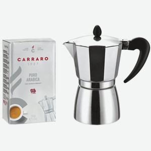 Подарочный набор CAFFE-CARRARO Happy New Year Rosso, кофе молотый Womens Day Carraro Puro Arabica + гейзерная кофеварка Italco Soft (275300)