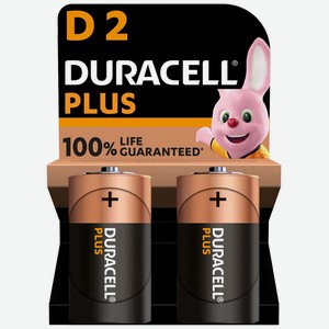 Батарейки Duracell Plus, D, 2 шт (LR20-2BL PLUS)