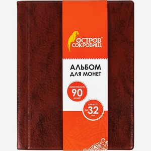 Альбом нумизматика ОСТРОВ-СОКРОВИЩ на 90 монет, 145х185 мм, коричневый (237959)