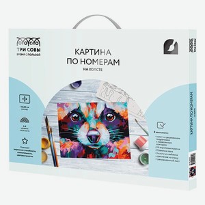 Картина по номерам Три Совы Енот , на холсте, 40х50 см, с акриловыми красками и кистями (КХ_44174)