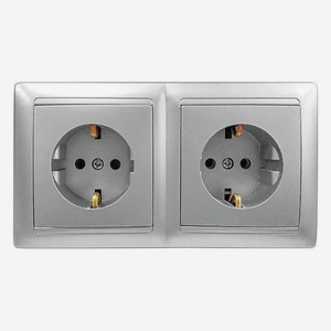 Розетка Bylectrica Стиль , 2-местная, угловая, с заземлением, серебристая (43584)
