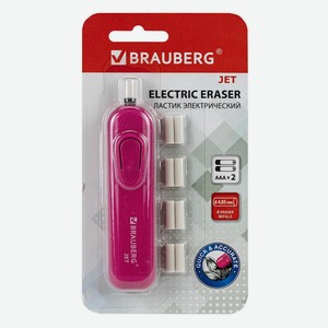 Электрический ластик Brauberg Jet, питание от 2 батареек ААА, 8 сменных ластиков, розовый (229617)