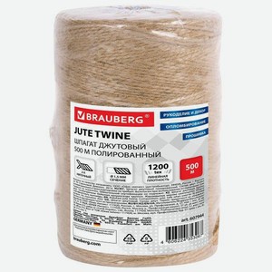Шпагат джутовый Brauberg полированный, 2-х ниточный, 1,5 мм, 500 м (607944)