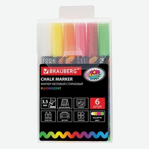 Набор меловых маркеров Brauberg Pop-Art, стираемых, для гладких поверхностей, 3,5 мм, 6 цветов (151526)